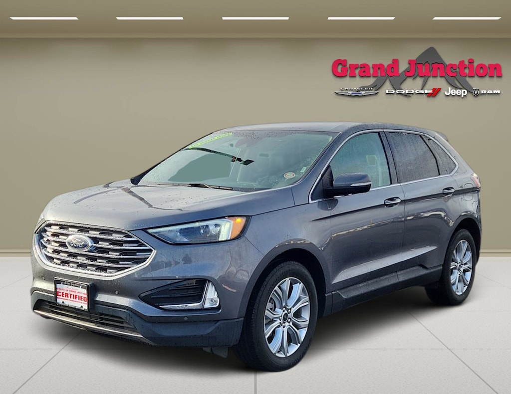 Start the vehicle from inside with remote start. This mid-size suv keeps you comfortable with Auto Climate. The state of the art park assist system will guide you easily into any spot. Good News! This certified CARFAX 1-owner vehicle has only had one owner before you. This unit warns of approaching vehicles with Cross-Traffic Alert. See what's behind you with the back up camera on this Ford Edge. This unit offers Apple CarPlay for seamless connectivity. This mid-size suv features a hands-free Bluetooth phone system. The vehicle offers Android Auto for seamless smartphone integration. Keep your hands warm all winter with a heated steering wheel in this 2023 Ford Edge . The leather seats in this Ford Edge are a must for buyers looking for comfort, durability, and style. The Ford Edge is equipped with all wheel drive. The vehicle has a 4 Cyl, 2.0L high output engine. Maintaining a stable interior temperature in this 2023 Ford Edge is easy with the climate control system.