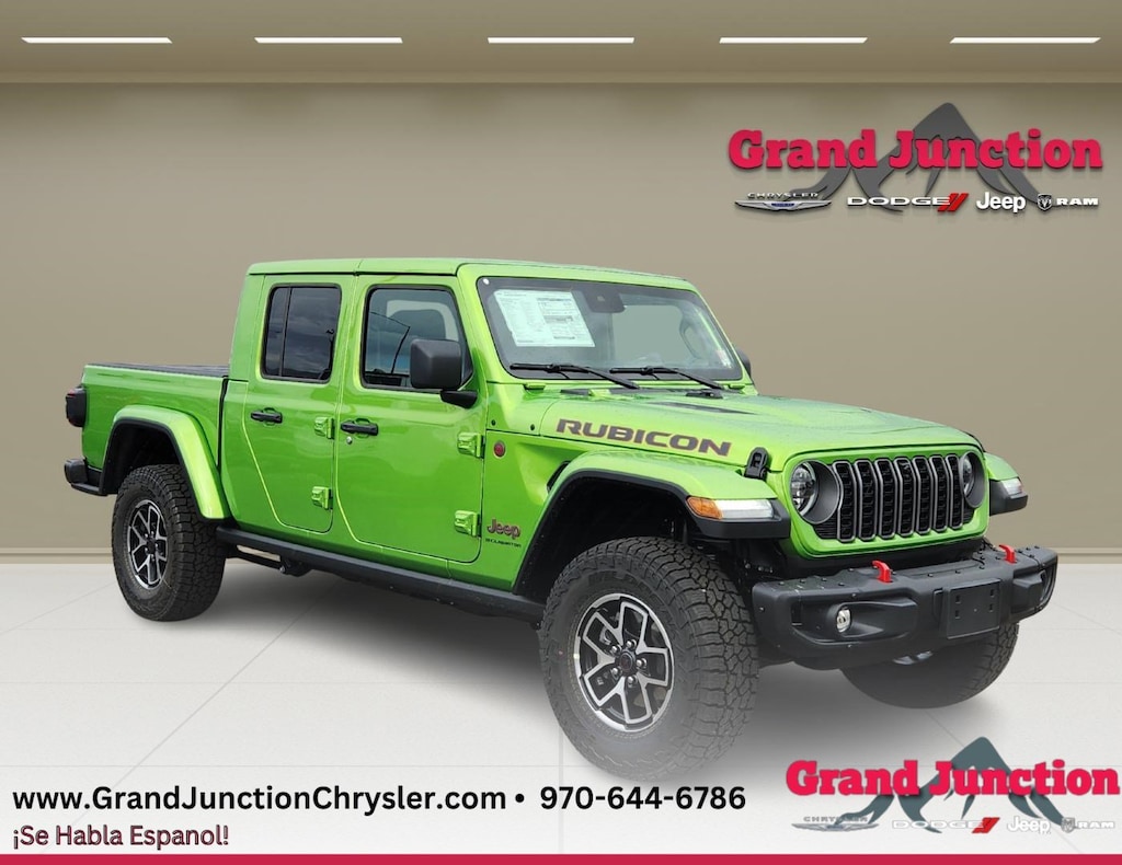 View this new 2025 Jeep Gladiator Pickup RUBICON X 4X4 for sale at Grand Junction Chrysler Dodge Jeep Ram, serving the Grand Junction, Clifton, Fruita, and Delta area with new Jeep Gladiator sales.