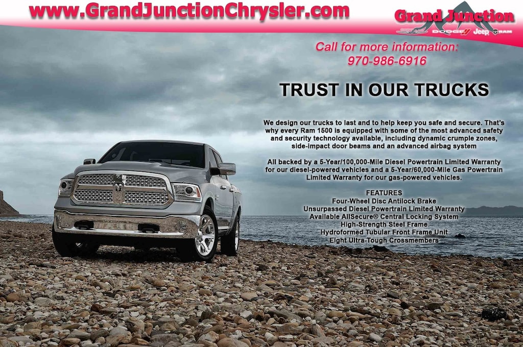 View this new 2026 Ram 1500 Pickup BIG HORN CREW CAB 4X4 5'7 BOX for sale at Grand Junction Chrysler Dodge Jeep Ram, serving the Grand Junction, Clifton, Fruita, and Delta area with new Ram 1500 sales.
