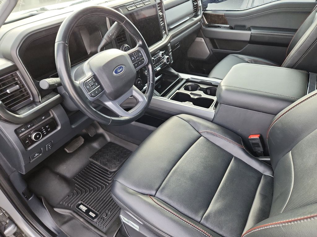 Lariat Ultimate Package: Upfitter Switches (6); 4-Way Adjustable Headrests; Wireless Charging Pad; Front Sensing System; Tailgate Step and Handle; Head-Up Display; Power-Deployable Running Boards. Ford Co-Pilot 360 2.0: Pre-Collision Assist; Post-Collision Braking; BLIS with Cross-Traffic Alert; Lane-Keeping System; Automatic High Beam. Tow Technology Package: Lane Keeping Assist; Pro Trailer Backup Assist; Intelligent Adaptive Cruise Control W/stop-And-go; Pro Trailer Hitch Assist. Order Code 618A: 18 Bright Machined and Carbonized Gray Aluminum Wheels; Front Leather-Trimmed 40/console/40 Seats; TorqShift 10-Speed Automatic Transmission; LT275/70Rx18E BSW A/T (4) Tires; B&O Sound System by Bang and Olufsen. Power-Deployable Running Boards. Tough Bed Spray-In Bedliner. Electronic-Locking with 3.31 Axle Ratio. Tailgate Step and Handle. Rapid-Heat Supplemental Cab Heater. Rear Wheel Well Liners. Upfitter Switches (6). **Equipment listed is based on original vehicle build and subject to change. Please confirm the accuracy of the included equipment by calling the dealer prior to purchase.**