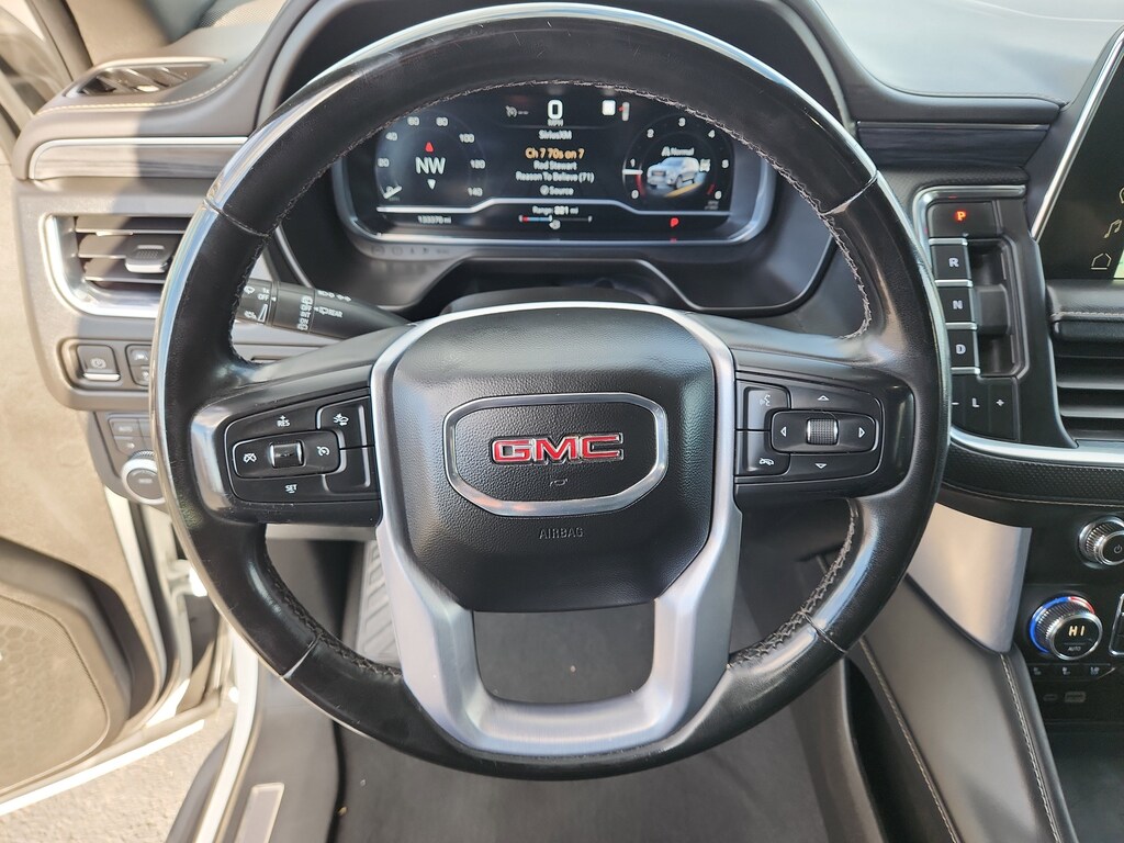 It warns of approaching vehicles with Cross-Traffic Alert. This GMC Yukon XL comes equipped with Android Auto for seamless smartphone integration on the road. The leather seats in this GMC Yukon XL are a must for buyers looking for comfort, durability, and style. This model features a high end BOSE stereo system. Never get into a cold vehicle again with the remote start feature on this GMC Yukon XL. You'll never again be lost in a crowded city or a country region with the navigation system on this model. This 2023 GMC Yukon XL 1500 offers Apple CarPlay for seamless connectivity. This vehicle is a certified CARFAX 1-owner. This model stays safely in its lane with Lane Keep Assist. Protect the GMC Yukon XL from unwanted accidents with a cutting edge backup camera system. Bluetooth technology is built into this vehicle, keeping your hands on the steering wheel and your focus on the road.