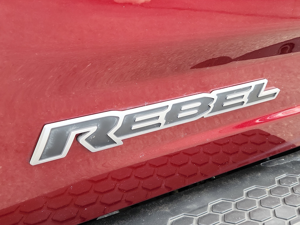 Luxury Group: Auto Dim Exterior Mirrors; Exterior Mirrors with Supplemental Signals; Power-Folding Mirrors; Rear Dome with On/off Switch Lamp; LED Bed Lighting; Exterior Mirrors Courtesy Lamps; Glove Box Lamp; Power Heated Fold-Away Mirrors; Sun Visors with Illuminated Vanity Mirrors; Overhead Console with Garage Door Opener. Quick Order Package 26W Rebel: Flat Black 5.7L Hemi Badge; Dual Rear Exhaust with Bright Tips. Protection Group: Transfer Case Skid Plate Shield; Front Suspension Skid Plate. RAM 1500 Black Rebel Group: Black Powder-Coated Front Bumper; 17 X 8 Matte Black Aluminum Wheels. 9 Alpine Speakers with Subwoofer. 32 Gallon Fuel Tank. Keyless Go. Trailer Brake Control. Rear Window Defroster. Delmonico Red Pearlcoat. Delmonico Red Pearlcoat. **Equipment listed is based on original vehicle build and subject to change. Please confirm the accuracy of the included equipment by calling the dealer prior to purchase.**