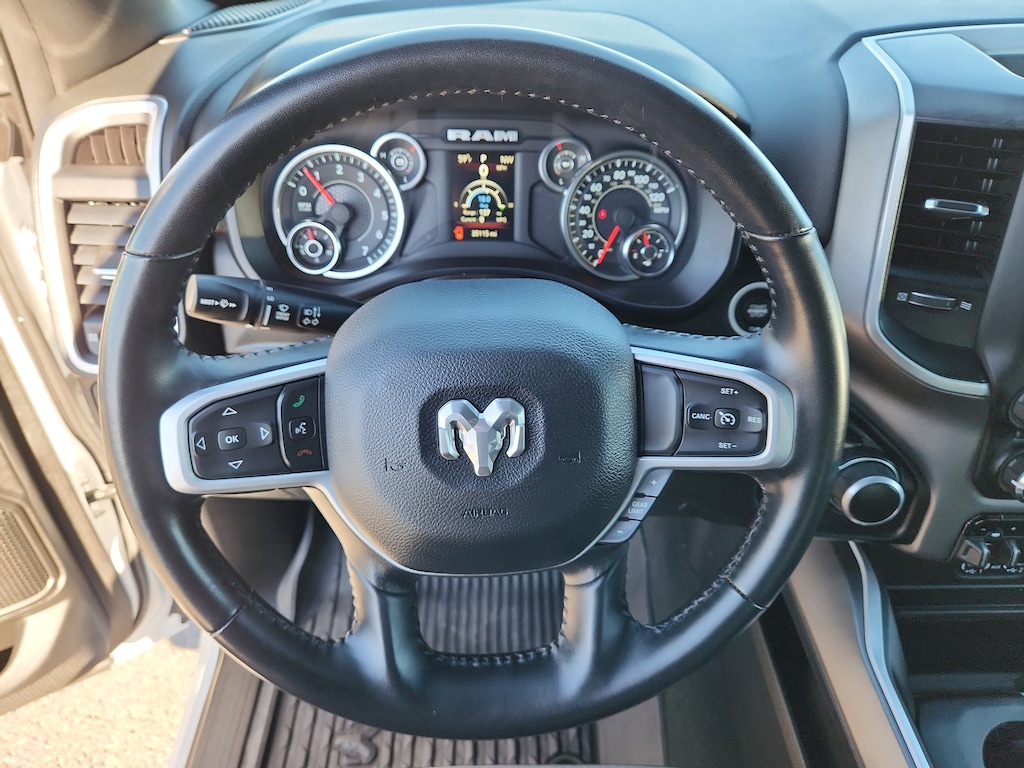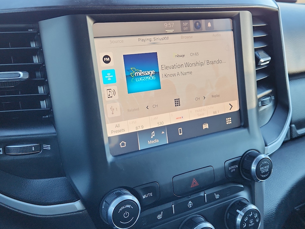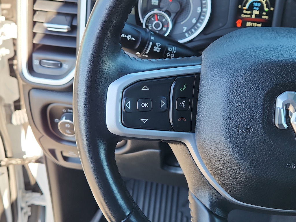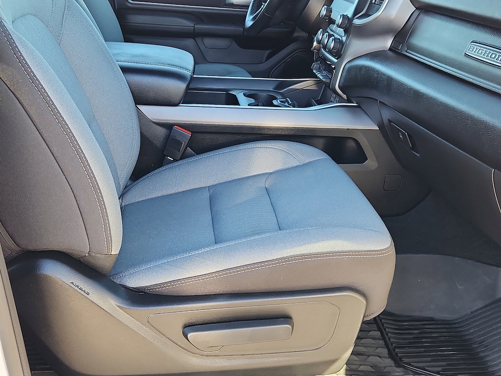 Quick Order Package 27Z Big Horn: Big Horn Badge. Big Horn Level 1 Equipment Group: Google Android Auto; Bluetooth Handsfree Phone and Audio; USB Host Flip; Rear Window Defroster; Integrated Center Stack Radio; Rear View Auto Dim Mirror; For Details. Visit DriveUconnect.com; For More Info. Call 800-643-2112; Rear Power Sliding Window; Rear Dome with On/off Switch Lamp; Front Fog Lamps; Connectivity - US/Canada; Glove Box Lamp; 4G LTE Wi-Fi Hot Spot; GPS Antenna Input; Exterior Mirrors with Heating Element; Auto Dim Exterior Driver Mirror; Heated Front Seats; Uconnect 5 W Radio with 8.4 Display; Heated Steering Wheel; 8.4 Touchscreen Display; Black Exterior Mirrors; Class IV Receiver Hitch; Black Premium Power Mirrors; Apple CarPlay; Big Horn Instrument Panel Badge; SiriusXM Satellite Radio; Exterior Mirrors with Supplemental Signals; Exterior Mirrors Courtesy Lamps; Passenger Sun Visor with Illuminated Mirror; Electric Shift on Demand Transfer Case; Power-Folding Mirrors; 2nd Row in Floor Storage Bins; Convex Wide-Angle Exterior Mirror Insert. Quick Order Package 23Z Big Horn: Big Horn Badge. Deluxe Cloth Bucket Seats. Trailer Brake Control. Remote Start System. Rear Wheelhouse Liners. MOPAR Front and Rear Rubber Floor Mats. **Equipment listed is based on original vehicle build and subject to change. Please confirm the accuracy of the included equipment by calling the dealer prior to purchase.**