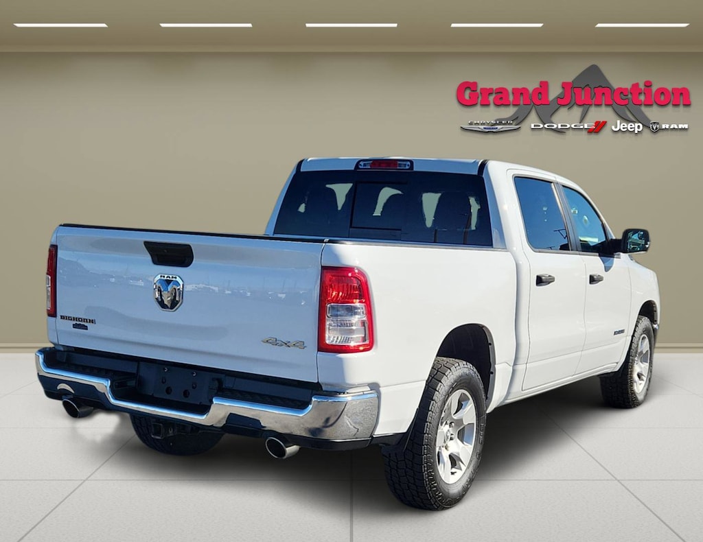 Start this vehicle from inside with remote start. This unit offers Android Auto for seamless smartphone integration. Bluetooth technology is built into this 1/2 ton pickup, keeping your hands on the steering wheel and your focus on the road. This 2023 Ram 1500 has satellite radio capabilities. This vehicle is a certified CARFAX 1-owner. Protect this 2023 Ram 1500 from unwanted accidents with a cutting edge backup camera system. Keep your hands warm all winter with a heated steering wheel in the Ram 1500 . This 2023 Ram 1500 is equipped with the latest generation of XM/Sirius Radio. Apple CarPlay: Seamless smartphone integration for this vehicle - stay connected and entertained on the go! A trailer braking system is already installed on this vehicle. This unit has a V8, 5.7L high output engine. This unit shines with clean polished lines coated with an elegant white finish. The Ram 1500 has four wheel drive capabilities.