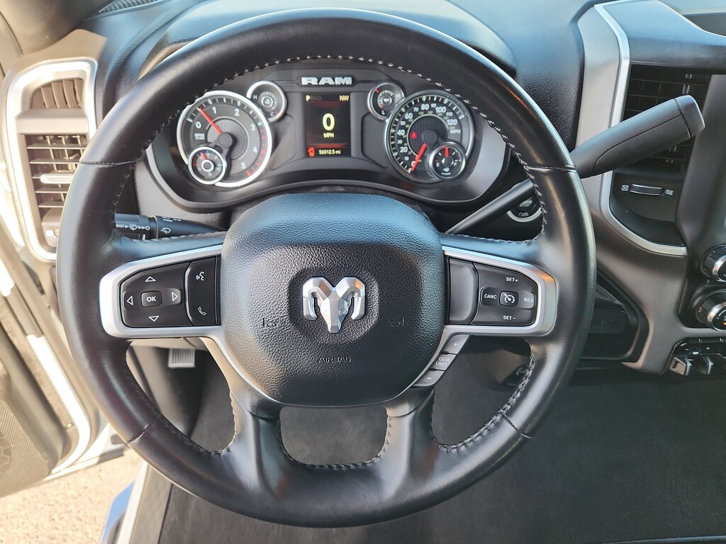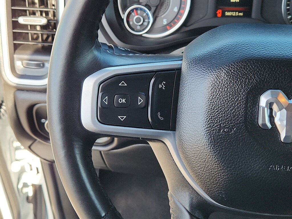 Quick Order Package 2HZ Big Horn. Level 1 Equipment Group: Leather Wrapped Steering Wheel; Rear Dome with On/off Switch Lamp; Front Fog Lamps; Premium Cloth 40/20/40 Bench Seat; Glove Box Lamp; Auto Power-Folding Mirrors; Footwell Courtesy Lamp; Exterior Mirrors with Heating Element; Mirror Running Lights; Uconnect 5 with 8.4 Display Radio; Foam Bottle Insert (door Trim Panel); Black Exterior Mirrors; 18 X 8.0 Polished Aluminum Wheels; Big Horn Instrument Panel Badge; Power-Adjustable Convex Aux Mirrors; Forward and Reverse Utility Lights; Locking Lower Glove Box; Power Heated Fold Telescopic Mirrors; Exterior Mirrors with Supplemental Signals; Steering Wheel Mounted Audio Controls; Exterior Mirrors Courtesy Lamps; Dual Glove Boxes; Center Hub; Power Adjust Mirrors; 2nd Row in Floor Storage Bins; Power Telescoping Mirrors. Quick Order Package 2GZ Big Horn. Premium Cloth 40/20/40 Bench Seat. Uconnect 5 with 8.4 Display Radio. Chrome Flat Cab-Length Side Steps. MOPAR Spray in Bedliner. 5th Wheel/gooseneck Towing Prep Group. Front Fog Lamps. Power 2-Way Driver Lumbar Adjust. **Equipment listed is based on original vehicle build and subject to change. Please confirm the accuracy of the included equipment by calling the dealer prior to purchase.**