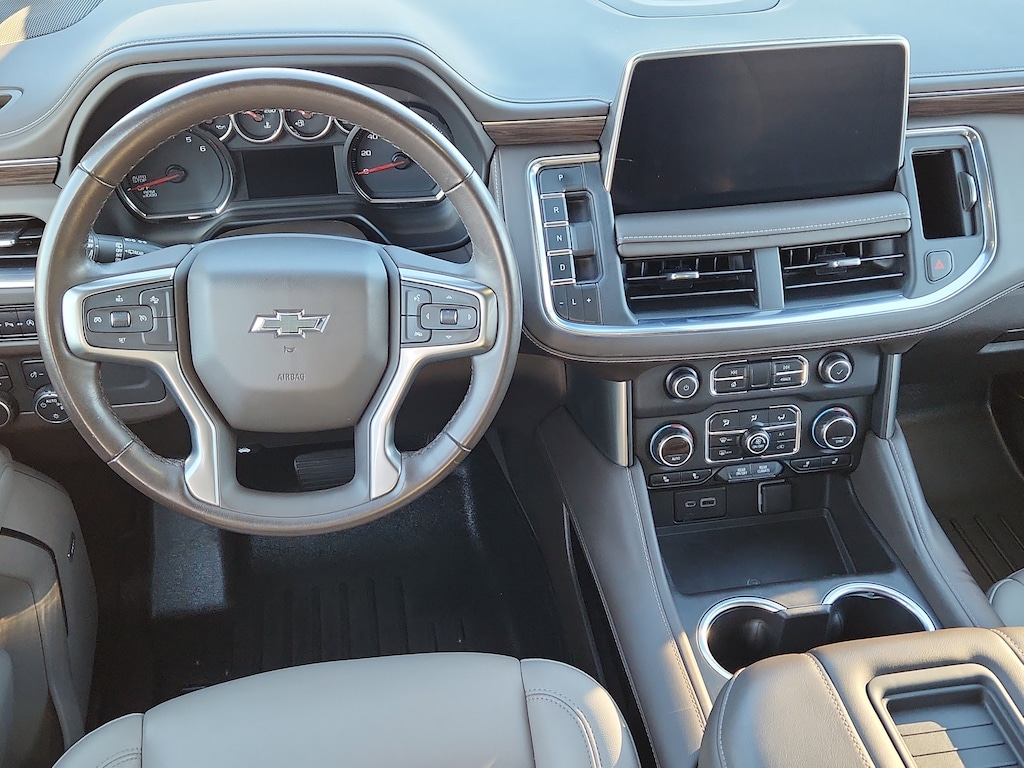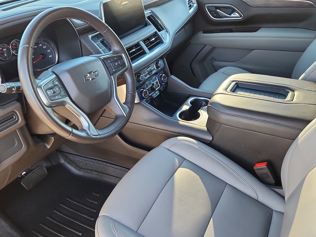 This model features a hands-free Bluetooth phone system. Start this 1/2 ton suv from inside with remote start. This vehicle is a certified CARFAX 1-owner. This model features a high end BOSE stereo system. This 2021 Chevrolet Tahoe offers Automatic Climate Control for personalized comfort. This model offers Apple CarPlay for seamless connectivity. The leather seats are soft and supportive on this 1/2 ton suv. This vehicle is equipped with the latest generation of XM/Sirius Radio. This 1/2 ton suv offers Android Auto for seamless smartphone integration. See what's behind you with the back up camera on this vehicle. The state of the art park assist system will guide you easily into any spot. Load groceries and much more with ease into it thanks to the power liftgate. This vehicle has four wheel drive capabilities. This model has a V8, 5.3L high output engine. This model features elegant lines colored with a long lasting sand colored finish.