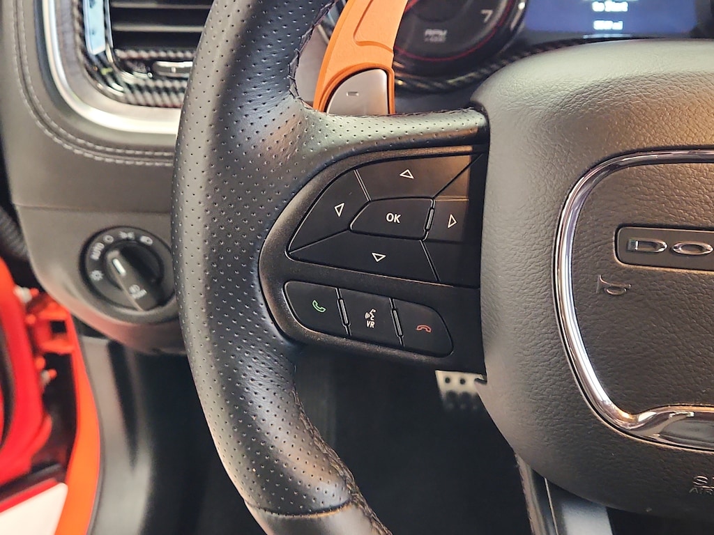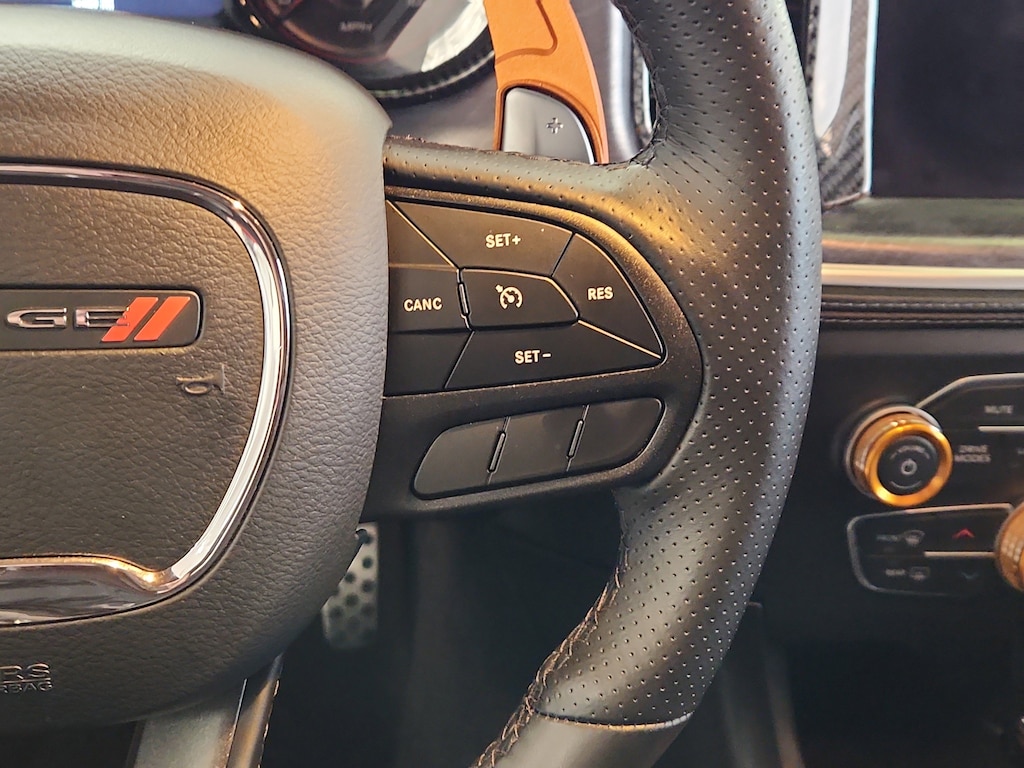 Daytona Edition Group: Power Tilt/telescope Steering Column; Blind Spot Memory/power/heat Mirror; Gloss Black Instrument Panel Cluster Trim Rings; Blind Spot and Cross Path Detection; Daytona Decals Hood/roof/trunk; Daytona Instrument Panel Badge; Black-Edged Premium Floormats; Exterior Mirrors Courtesy Lamps; MOPAR Cold Air Intake System; Pirelli Brand Tires; Premium-Stitched Dash Panel; Daytona Front Grille Badge; 20 X 9.5 Low-Gloss Black Knurled Wheels; Locking Lug Nuts; 392 Fender Decal; Exterior Mirrors with Heating Element; Auto Dim Exterior Driver Mirror; Daytona Logo Nappa/Alcantara Seat; 275/40ZR20 AS Performance Tires; Driver and Passenger Lower LED Lamps; Rhombi 2 Piece Wheel Center Cap; Carbonite Interior Accents; Auto Adjust in Reverse Exterior Mirrors; Front Overhead LED Lighting. Quick Order Package 21W Scat Pack. Go Mango. **Equipment listed is based on original vehicle build and subject to change. Please confirm the accuracy of the included equipment by calling the dealer prior to purchase.**