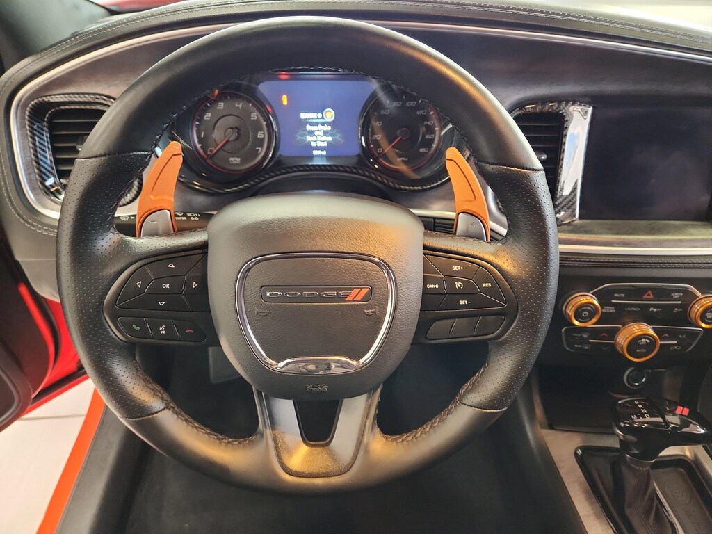 This 2023 Dodge Charger has a clean CARFAX vehicle history report. The vehicle comes equipped with Android Auto for seamless smartphone integration on the road. This model features a hands-free Bluetooth phone system. This model keeps you comfortable with Auto Climate. See what's behind you with the back up camera on this 2023 Dodge Charger . This large car offers Apple CarPlay for seamless connectivity. Keep your hands warm all winter with a heated steering wheel in this Dodge Charger . This 2023 Dodge Charger is equipped with the latest generation of XM/Sirius Radio. The state of the art park assist system will guide you easily into any spot. This 2023 Dodge Charger shines like the sun with a vibrant orange exterior finish. This Dodge Charger is rear wheel drive. With the keyless entry system on this unit you can pop the trunk without dropping your bags from the store.