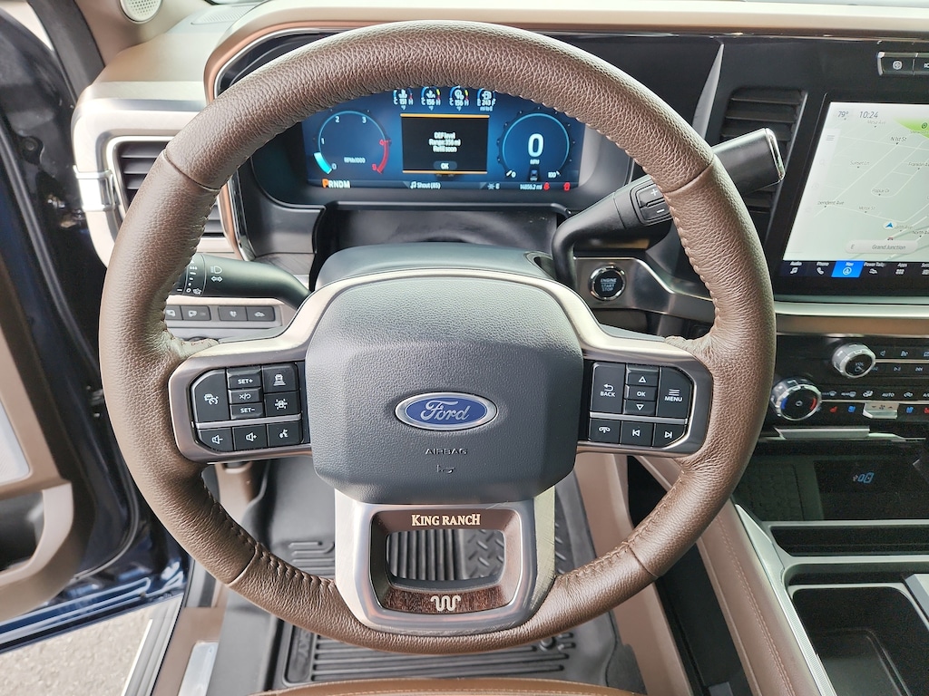 The leather seats in it are a must for buyers looking for comfort, durability, and style. Our dealership has already run the CARFAX report and it is clean. A clean CARFAX is a great asset for resale value in the future. Good News! This certified CARFAX 1-owner vehicle has only had one owner before you. The vehicle has auto-adjust speed for safe following. Protect it from unwanted accidents with a cutting edge backup camera system. It features a hands-free Bluetooth phone system. An off-road package is equipped on this 2024 Ford F-250 Super Duty. Keep your hands warm all winter with a heated steering wheel in this model . Start the Ford F-250 from inside with remote start. The installed navigation system will keep you on the right path. Always ready for work. it with a Powerstroke diesel engine will help you get the job done right. Impresses the most discerning driver with the deep polished blue exterior on this Ford F-250.