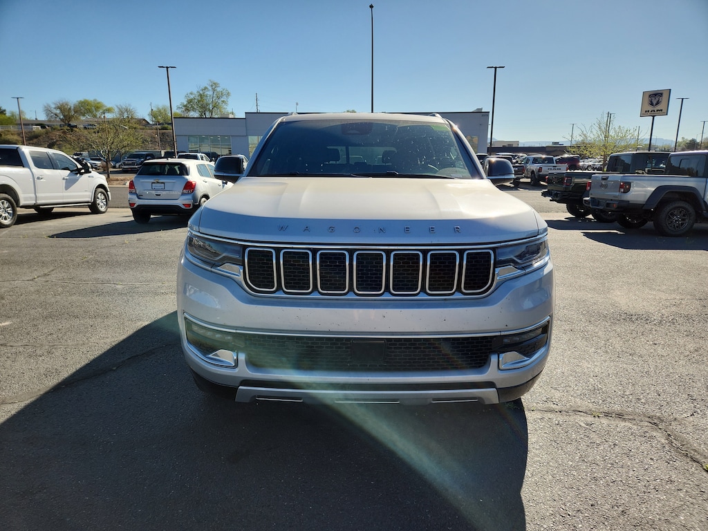 The installed navigation system will keep you on the right path. Start this 1/2 ton suv from inside with remote start. This vehicle comes equipped with Android Auto for seamless smartphone integration on the road. Bluetooth technology is built into this Jeep Wagoneer, keeping your hands on the steering wheel and your focus on the road. It is pure luxury with a heated steering wheel. The leather seats in it are a must for buyers looking for comfort, durability, and style. This 2024 Jeep Wagoneer 's Forward Collision Warning system alerts the driver to potential front-end collisions, enhancing safety. This vehicle has auto-adjust speed for safe following. This unit offers Apple CarPlay for seamless connectivity. This vehicle is a certified CARFAX 1-owner. See what's behind you with the back up camera on the vehicle. The Jeep Wagoneer shines with an exquisite metallic silver exterior finish. Enjoy the convenience of the power liftgate on this unit.