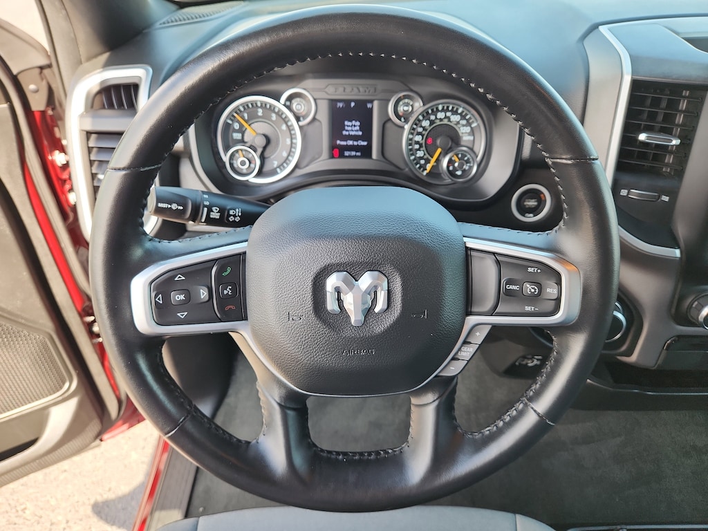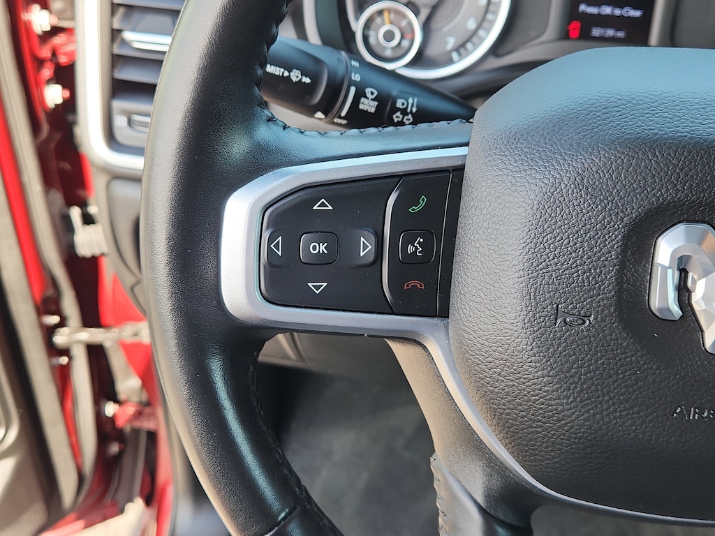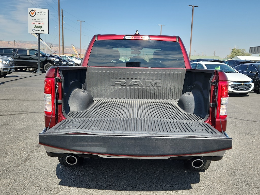 This vehicle is a certified CARFAX 1-owner. Bluetooth technology is built into the Ram 1500, keeping your hands on the steering wheel and your focus on the road. See what's behind you with the back up camera on this vehicle. Start it from inside with remote start. It has a clean CARFAX vehicle history report. This model is equipped with the latest generation of XM/Sirius Radio. This vehicle has four wheel drive capabilities. This 1/2 ton pickup has a V8, 5.7L high output engine. It excites both driver and bystanders with a polished red exterior with racy lines. This model features cruise control for long trips. The fog lights cut through the weather so you can see what's ahead. The Electronic Stability Control will keep you on your intended path. Enjoy the tried and true gasoline engine in this Ram 1500. The high efficiency automatic transmission shifts smoothly and allows you to relax while driving.
