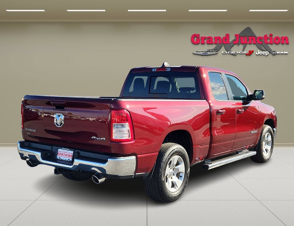 Quick Order Package 28Z Big Horn: Big Horn Badge. Big Horn Level B Equipment Group: Google Android Auto; SiriusXM Radio Service; Bluetooth Handsfree Phone and Audio; USB Host Flip; Rear Window Defroster; Integrated Center Stack Radio; ParkSense Front/rear Park Assist with Stop; Rear View Auto Dim Mirror; Power Adjustable Pedals; For More Info. Call 800-643-2112; Rear Power Sliding Window; Rear Dome with On/off Switch Lamp; Connectivity - US/Canada; Glove Box Lamp; 4G LTE Wi-Fi Hot Spot; 115V Auxiliary Rear Power Outlet; Media Hub with 2 Charge Only USBs; Power 8-Way Driver Seat; Auto Dim Exterior Driver Mirror; Heated Front Seats; Heated Steering Wheel; 8.4 Touchscreen Display; Foam Bottle Insert (door Trim Panel); Class IV Receiver Hitch; Security Alarm; Apple CarPlay; Big Horn Instrument Panel Badge; Black Premium Power Mirrors; Remote Start System; SiriusXM Satellite Radio; Exterior Mirrors with Supplemental Signals; Exterior Mirrors Courtesy Lamps; Air Conditioning ATC with Dual Zone Control; 115V Auxiliary Power Outlet; Cluster 7.0 TFT Color Display; Universal Garage Door Opener; Sun Visors with Illuminated Vanity Mirrors; Power 2-Way Driver Lumbar Adjust. Uconnect 5 Navigation Radio with 8.4 Display. Deluxe Cloth Bucket Seats. ParkSense Front/rear Park Assist with Stop. 115V Auxiliary Power Outlet. Remote Start System. Delmonico Red Pearlcoat. Delmonico Red Pearlcoat. Cluster 7.0 TFT Color Display. **Equipment listed is based on original vehicle build and subject to change. Please confirm the accuracy of the included equipment by calling the dealer prior to purchase.**