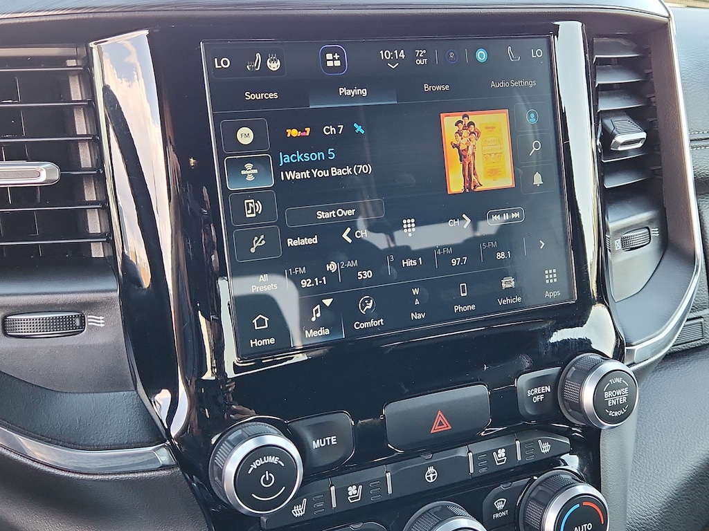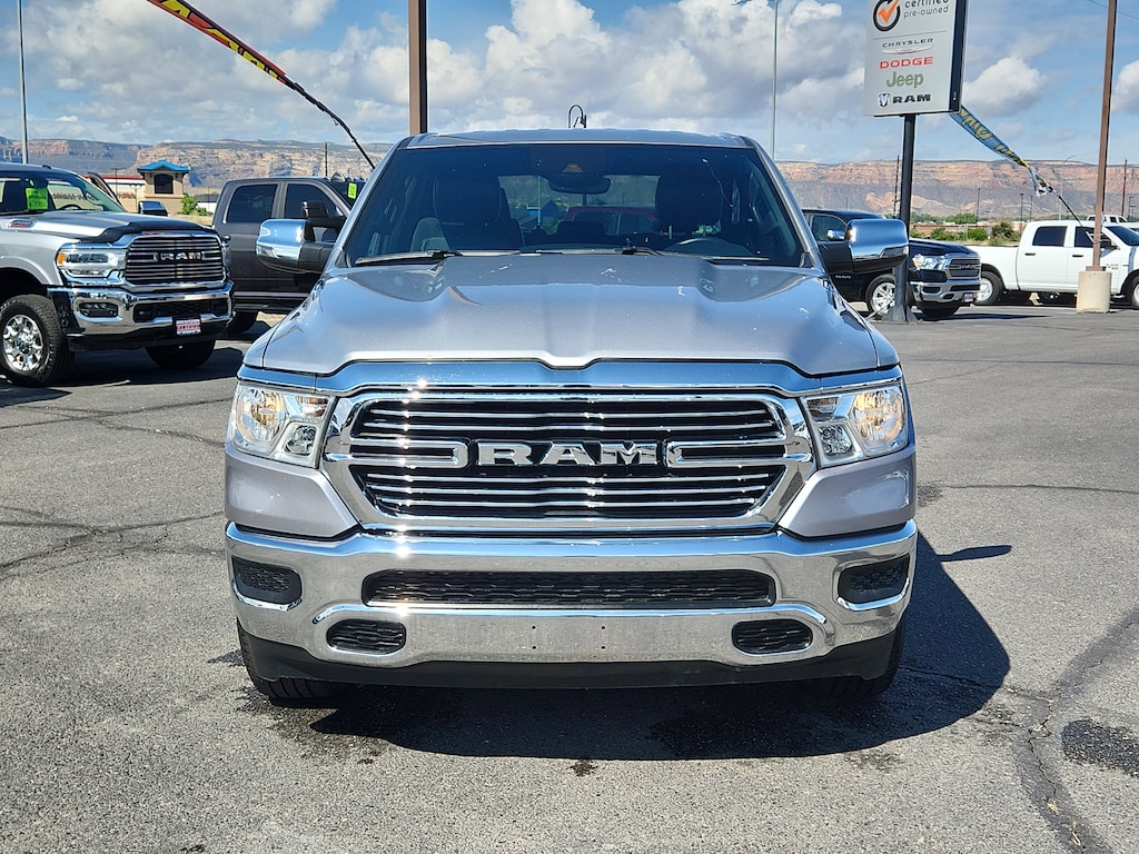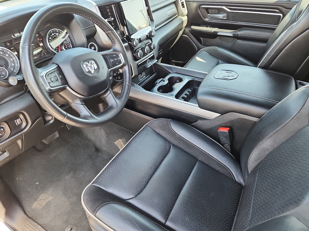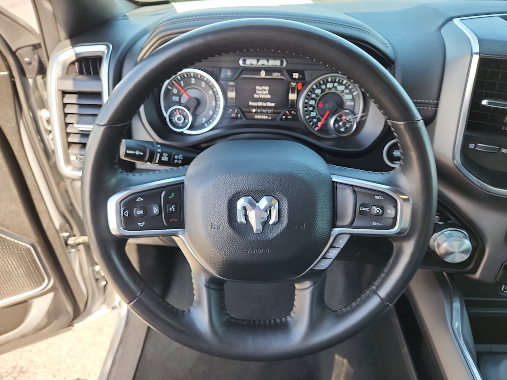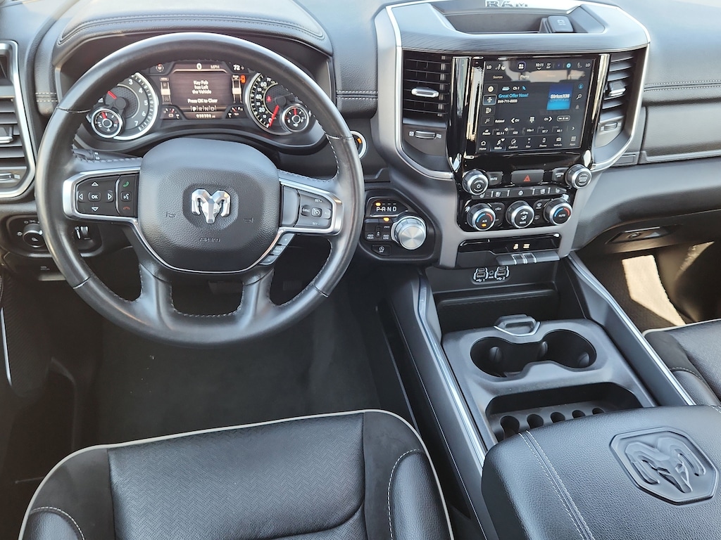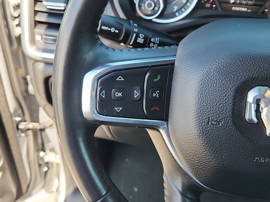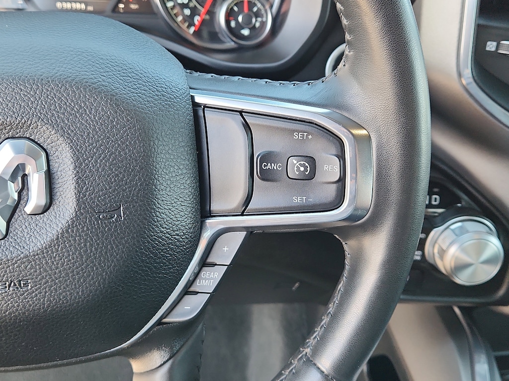 The Ram 1500 features a hands-free Bluetooth phone system. Apple CarPlay: Seamless smartphone integration for this vehicle - stay connected and entertained on the go! This 1/2 ton pickup's Forward Collision Warning feature alerts drivers to potential front-end collisions. Keep your hands warm all winter with a heated steering wheel in it . The vehicle comes equipped with Android Auto for seamless smartphone integration on the road. The Ram 1500 offers Automatic Climate Control for personalized comfort. Our dealership has already run the CARFAX report and it is clean. A clean CARFAX is a great asset for resale value in the future. The leather seats in it are a must for buyers looking for comfort, durability, and style. Protect the Ram 1500 from unwanted accidents with a cutting edge backup camera system. Good News! This certified CARFAX 1-owner vehicle has only had one owner before you. The installed navigation system will keep you on the right path.