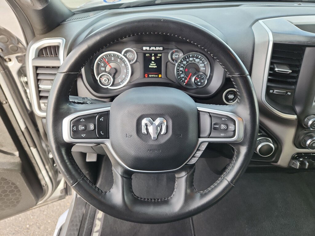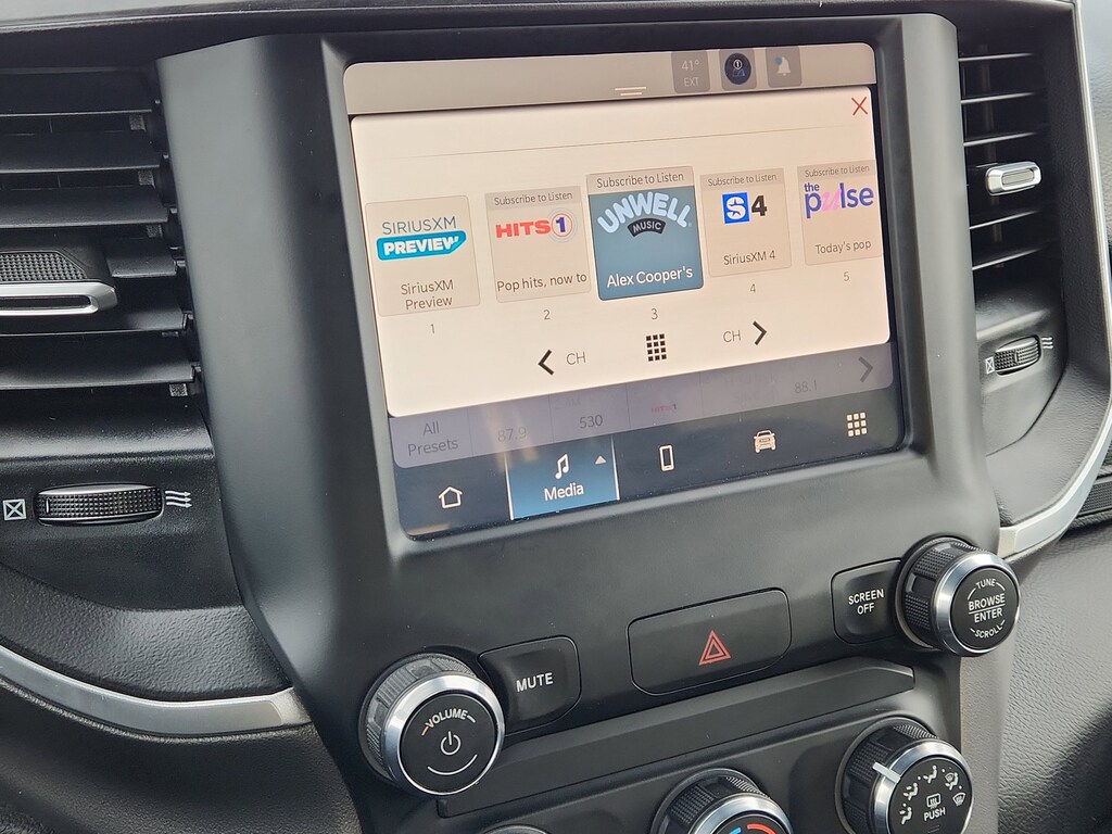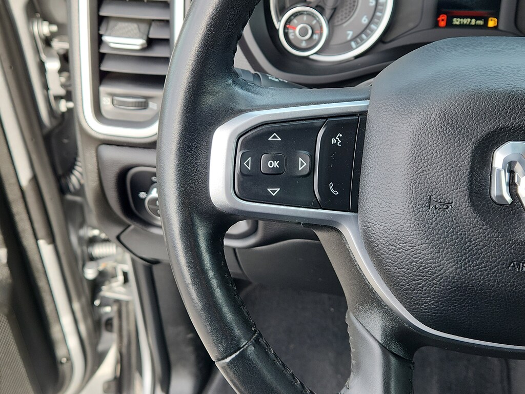 Quick Order Package 2GZ Big Horn. Level 1 Equipment Group: Google Android Auto; SiriusXM Radio Service; Bluetooth Handsfree Phone and Audio; Integrated Center Stack Radio; For Details. Visit DriveUconnect.com; For More Info. Call 800-643-2112; Leather Wrapped Steering Wheel; Rear Dome with On/off Switch Lamp; Front Fog Lamps; Integrated Voice Command with Bluetooth; Connectivity - US/Canada; Premium Cloth 40/20/40 Bench Seat; Glove Box Lamp; Auto Power-Folding Mirrors; Footwell Courtesy Lamp; 4G LTE Wi-Fi Hot Spot; GPS Antenna Input; Exterior Mirrors with Heating Element; Global Telematics Box Module; Mirror Running Lights; Uconnect 5 W Radio with 8.4 Display; 8.4 Touchscreen Display; Foam Bottle Insert (door Trim Panel); Black Exterior Mirrors; 18 X 8.0 Polished Aluminum Wheels; Apple CarPlay; Big Horn Instrument Panel Badge; Power Adjustable Convex Aux Mirrors; Forward and Reverse Utility Lights; Locking Lower Glove Box; Selectable Tire Fill Alert; SiriusXM Satellite Radio; Power Heated Fold Telescope Mirrors; Exterior Mirrors with Supplemental Signals; Steering Wheel Mounted Audio Controls; Exterior Mirrors Courtesy Lamps; Dual Glove Boxes; Center Hub; Power Adjust Mirrors; 2nd Row in Floor Storage Bins; Power Telescoping Mirrors. Premium Cloth 40/20/40 Bench Seat. Chrome Flat Cab-Length Side Steps. Billet Silver Metallic CC. Front Fog Lamps. Tow Hooks. **Equipment listed is based on original vehicle build and subject to change. Please confirm the accuracy of the included equipment by calling the dealer prior to purchase.**