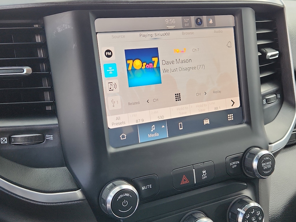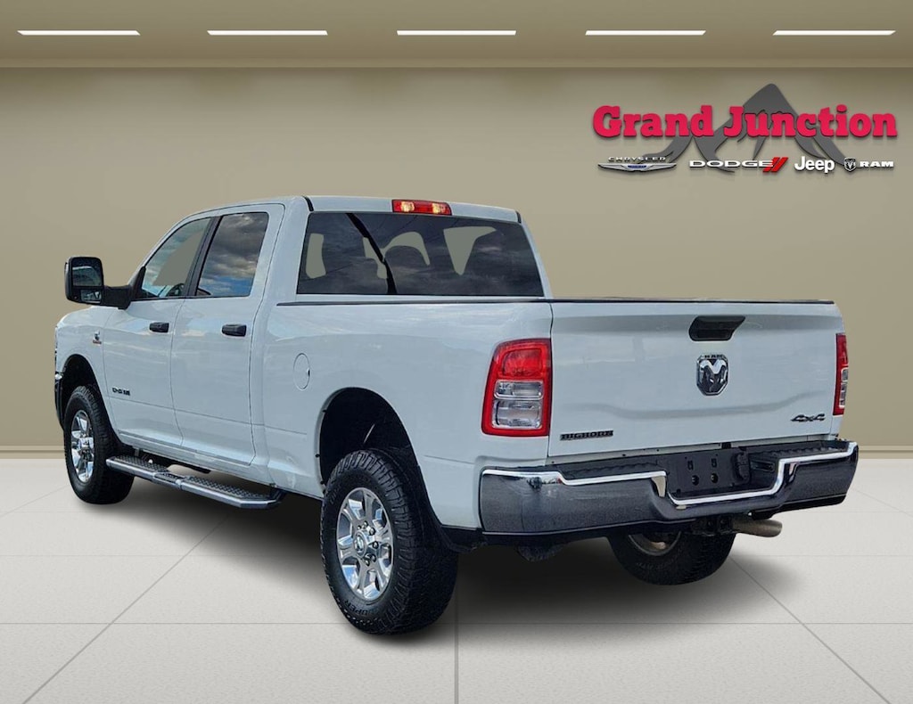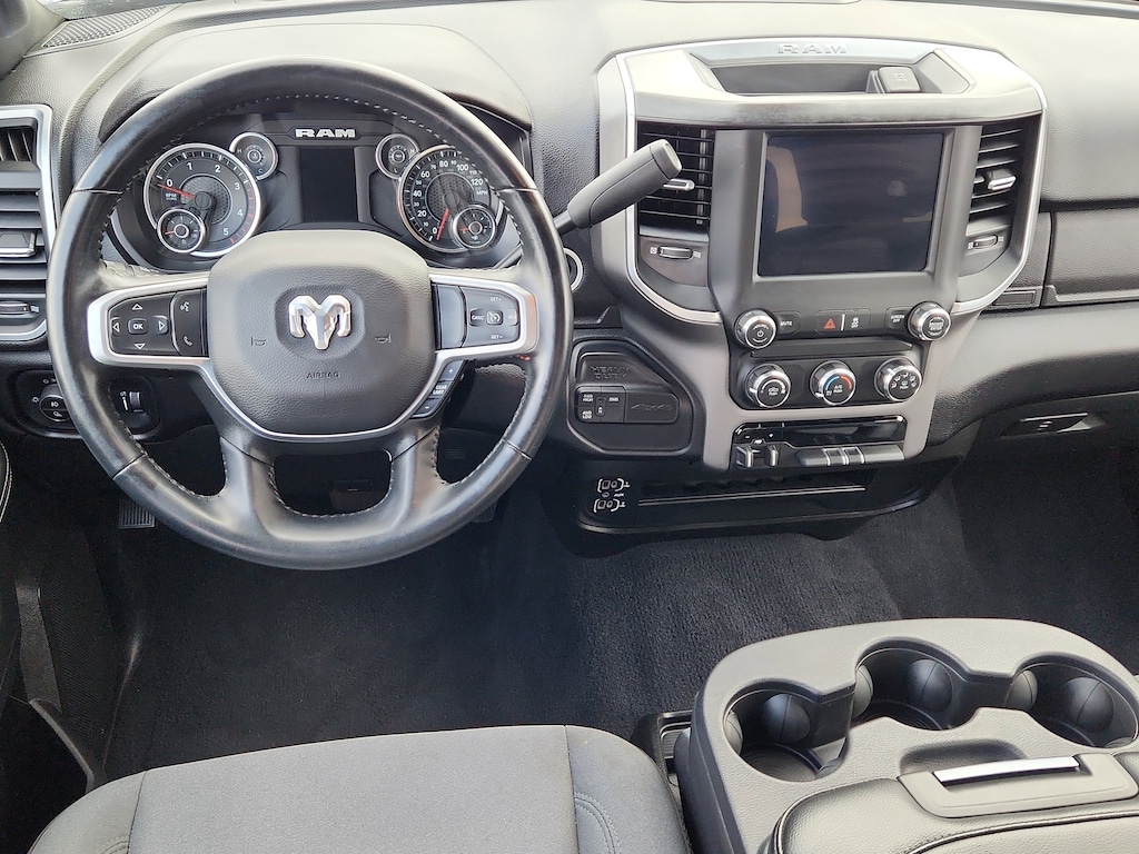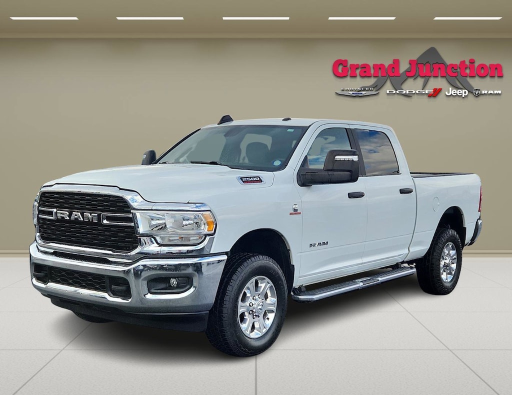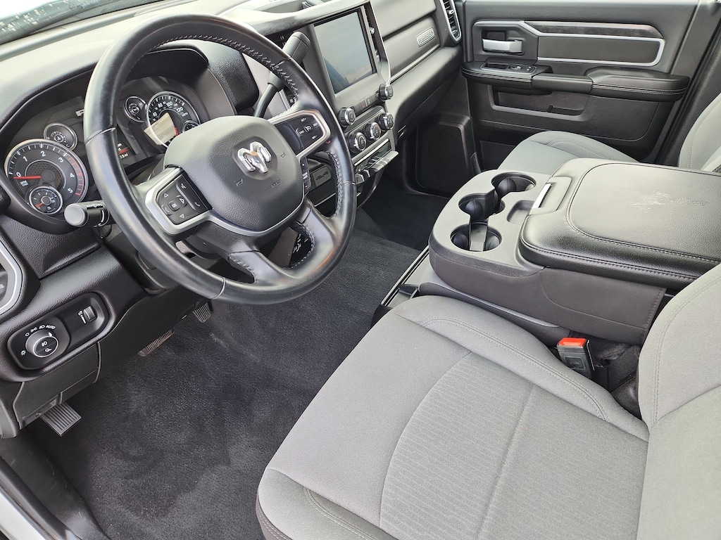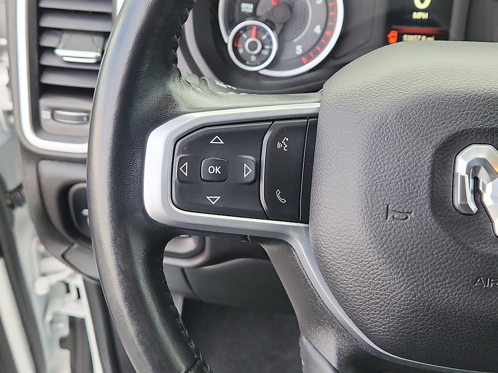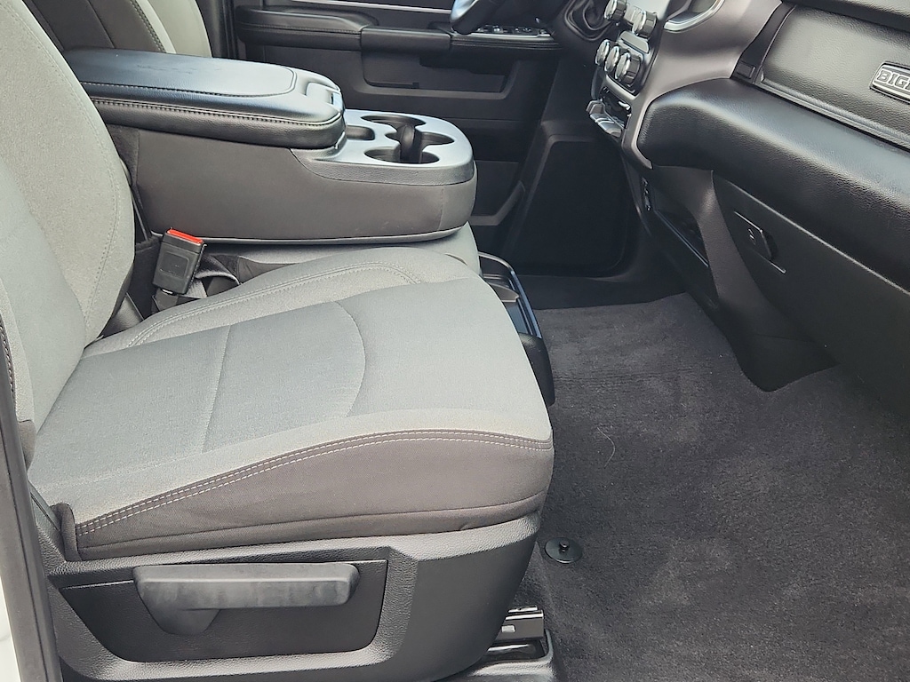Quick Order Package 2HZ Big Horn. Level 1 Equipment Group: Google Android Auto; SiriusXM Radio Service; Bluetooth Handsfree Phone and Audio; Integrated Center Stack Radio; For Details. Visit DriveUconnect.com; For More Info. Call 800-643-2112; Leather Wrapped Steering Wheel; Rear Dome with On/off Switch Lamp; Front Fog Lamps; Integrated Voice Command with Bluetooth; Connectivity - US/Canada; Premium Cloth 40/20/40 Bench Seat; Glove Box Lamp; Auto Power-Folding Mirrors; Footwell Courtesy Lamp; 4G LTE Wi-Fi Hot Spot; GPS Antenna Input; Exterior Mirrors with Heating Element; Global Telematics Box Module; Mirror Running Lights; Uconnect 5 W Radio with 8.4 Display; 8.4 Touchscreen Display; Foam Bottle Insert (door Trim Panel); Black Exterior Mirrors; 18 X 8.0 Polished Aluminum Wheels; Apple CarPlay; Big Horn Instrument Panel Badge; Power Adjustable Convex Aux Mirrors; Forward and Reverse Utility Lights; Locking Lower Glove Box; Selectable Tire Fill Alert; SiriusXM Satellite Radio; Power Heated Fold Telescope Mirrors; Exterior Mirrors with Supplemental Signals; Steering Wheel Mounted Audio Controls; Exterior Mirrors Courtesy Lamps; Dual Glove Boxes; Center Hub; Power Adjust Mirrors; 2nd Row in Floor Storage Bins; Power Telescoping Mirrors. Quick Order Package 2GZ Big Horn. Premium Cloth 40/20/40 Bench Seat. Chrome Flat Cab-Length Side Steps. Front Fog Lamps. Tow Hooks. **Equipment listed is based on original vehicle build and subject to change. Please confirm the accuracy of the included equipment by calling the dealer prior to purchase.**