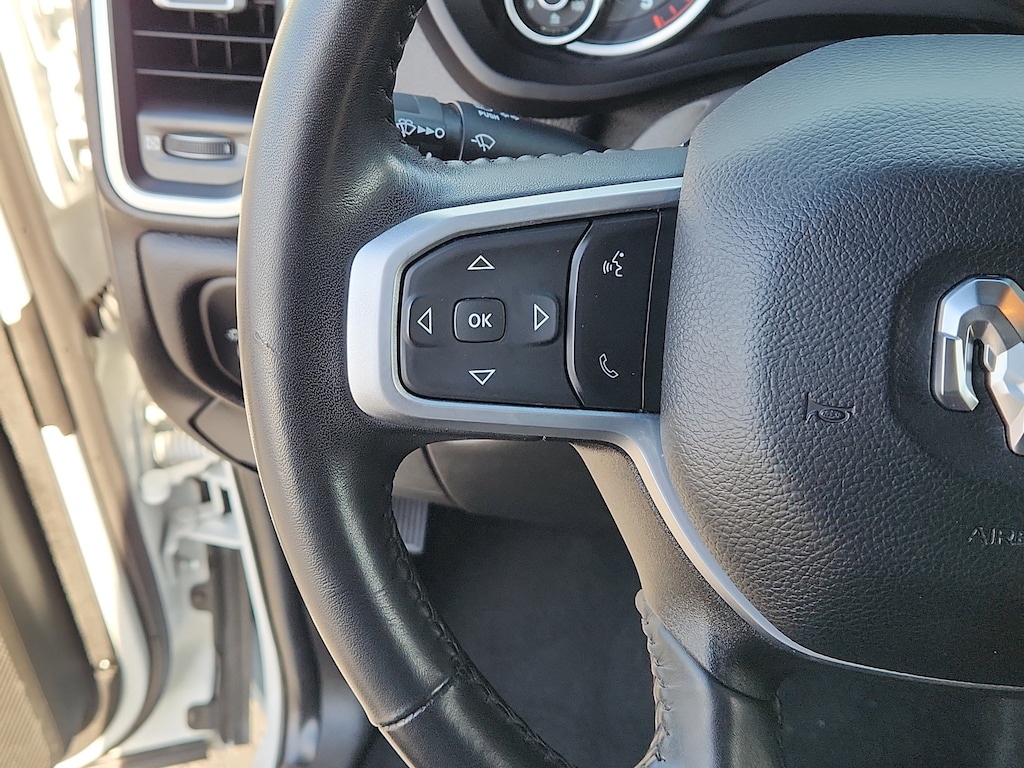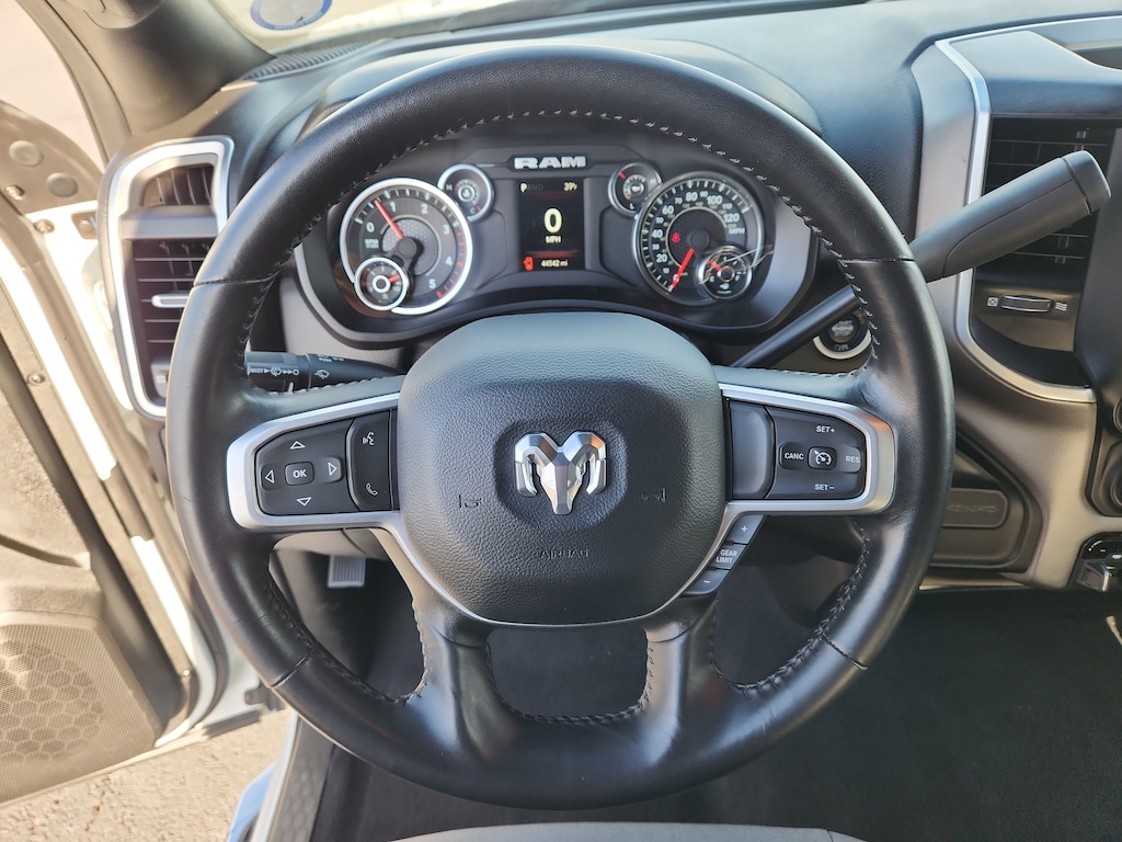 Quick Order Package 2HZ Big Horn. Level 1 Equipment Group: Leather Wrapped Steering Wheel; Rear Dome with On/off Switch Lamp; Front Fog Lamps; Premium Cloth 40/20/40 Bench Seat; Glove Box Lamp; Auto Power-Folding Mirrors; Footwell Courtesy Lamp; Exterior Mirrors with Heating Element; Mirror Running Lights; Uconnect 5 with 8.4 Display Radio; Foam Bottle Insert (door Trim Panel); Black Exterior Mirrors; 18 X 8.0 Polished Aluminum Wheels; Big Horn Instrument Panel Badge; Power-Adjustable Convex Aux Mirrors; Forward and Reverse Utility Lights; Locking Lower Glove Box; Power Heated Fold Telescopic Mirrors; Exterior Mirrors with Supplemental Signals; Steering Wheel Mounted Audio Controls; Exterior Mirrors Courtesy Lamps; Dual Glove Boxes; Center Hub; Power Adjust Mirrors; 2nd Row in Floor Storage Bins; Power Telescoping Mirrors. Quick Order Package 2GZ Big Horn. Premium Cloth 40/20/40 Bench Seat. Uconnect 5 with 8.4 Display Radio. Chrome Flat Cab-Length Side Steps. MOPAR Spray in Bedliner. 5th Wheel/gooseneck Towing Prep Group. Front Fog Lamps. Power 2-Way Driver Lumbar Adjust. **Equipment listed is based on original vehicle build and subject to change. Please confirm the accuracy of the included equipment by calling the dealer prior to purchase.**