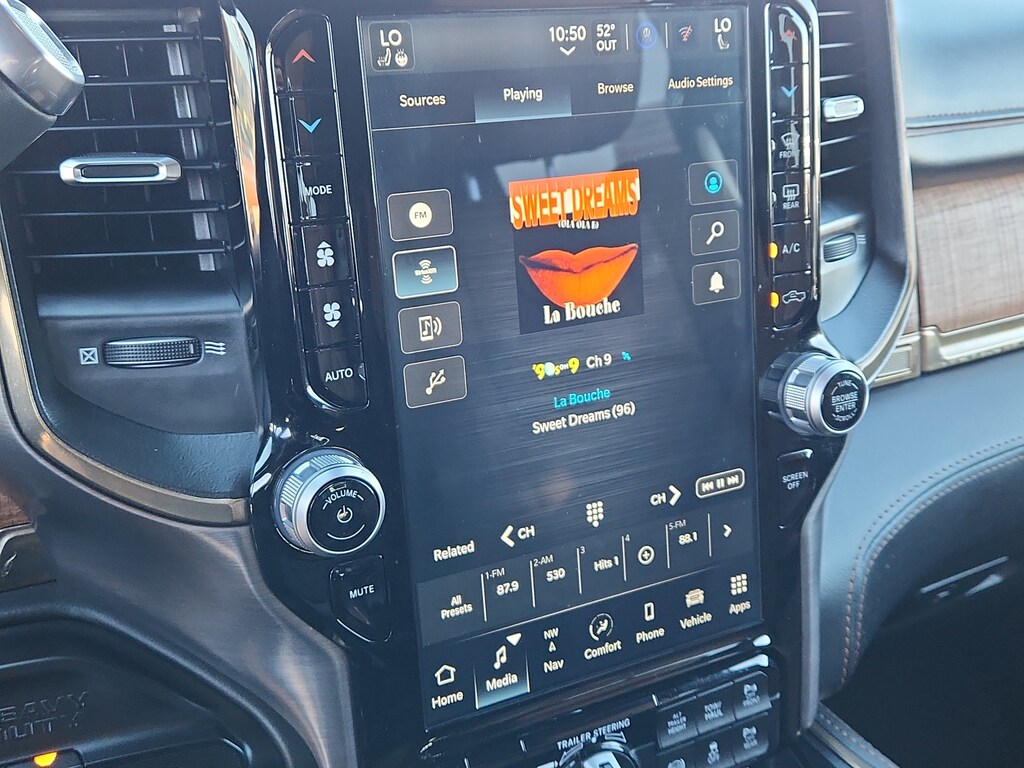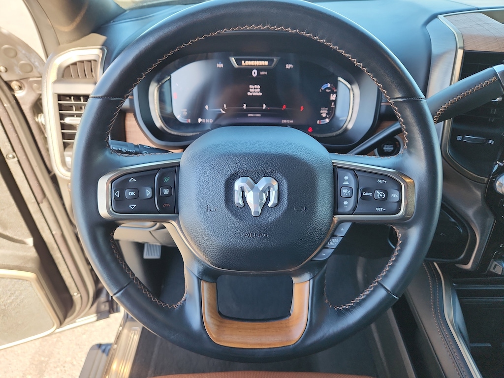 Quick Order Package 2HK Longhorn. Longhorn Level 1 Equipment Group: Google Android Auto; SiriusXM Radio Service; Blind Spot and Cross Path Detection; For Details Visit DriveUconnect.com; For More Info. Call 800-643-2112; Integrated Voice Command with Bluetooth; LED Bed Lighting; Connectivity - US/Canada; Power Deployable Running Boards; 12 Touchscreen Display; GPS Navigation; 4G LTE Wi-Fi Hot Spot; GPS Antenna Input; SiriusXM with 360L; Global Telematics Box Module; Connected Travel and Traffic Services; Alexa Built-In; Apple CarPlay; Off-Road Information Pages; Selectable Tire Fill Alert; Trailer Tow Pages; Disassociated Touchscreen Display; HD Radio; Ramcharger Wireless Charging Pad; Uconnect 5 Navigation with 12.0 Display Radio; MOPAR Spray in Bedliner; 17 Speaker Harman/kardon Premium Sound. Tow Technology Plus Group: Trailer Reverse Steering Control; Digital 3.0 Rear View Auto Dimming Mirror. Safety Group: Blind Spot and Cross Path Detection; Adaptive Cruise Control with Stop; Adaptive Steering System; Full Speed Forward Collision Warning Plus; Lane Keep Assist. Towing Technology Group: Center Stop Lamp with Cargo View Camera; Surround View Camera System; Trailer Reverse Guidance. Auto Level Rear Air Suspension. Power Sunroof. Tri-Fold Tonneau Cover. Blind Spot and Cross Path Detection. 5th Wheel/gooseneck Towing Prep Group. MOPAR Deployable Bed Step. Center Stop Lamp with Cargo View Camera. Adaptive Steering System. Granite Crystal Met CC. Clearance Lamps. **Equipment listed is based on original vehicle build and subject to change. Please confirm the accuracy of the included equipment by calling the dealer prior to purchase.**