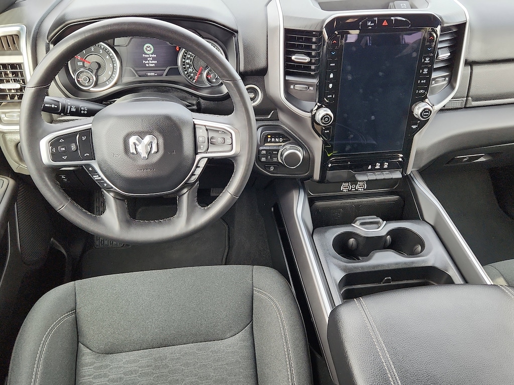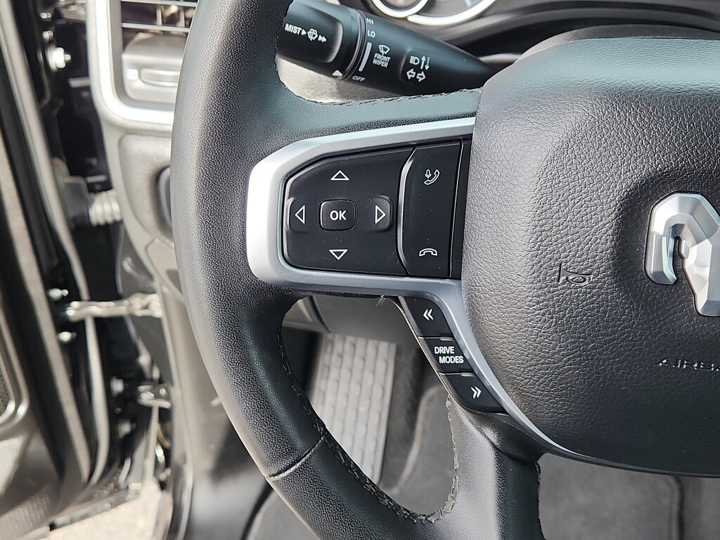 Quick Order Package 21Z Big Horn. Big Horn Level 2 Equipment Group: Google Android Auto; USB Host Flip; Power Adjustable Pedals; Leather Wrapped Steering Wheel; Integrated Voice Command with Bluetooth; 12 Touchscreen Display; Glove Box Lamp; Auto Power-Folding Mirrors; 115V Auxiliary Rear Power Outlet; Media Hub with 2 Charge Only USBs; Heated Front Seats; Security Alarm; Black Premium Power Mirrors; Apple CarPlay; Premium Overhead Console; 9 Amplified Speakers with Subwoofer; Wireless Charging Pad; Remote Tailgate Release; 115V Auxiliary Power Outlet; LED Dome Lamp with On/off Switch; Universal Garage Door Opener; 2nd Row in Floor Storage Bins; Sun Visors with Illuminated Vanity Mirrors; LED Footwell Lighting; Power 2-Way Driver Lumbar Adjust; Rear Window Defroster; Rear View Auto Dim Mirror; Rear Power Sliding Window; Connectivity - US/Canada; GPS Navigation; 4G LTE Wi-Fi Hot Spot; GPS Antenna Input; Overhead LED Lamps; Exterior Mirrors with Heating Element; Auto Dim Exterior Driver Mirror; SiriusXM with 360L; Connected Travel and Traffic Services; Heated Steering Wheel; Black Exterior Mirrors; Configurable Drive Mode; 400W Inverter; HD Radio; Uconnect 5 Navigation with 12.0 Display Radio; Exterior Mirrors with Supplemental Signals; Steering Wheel Mounted Audio Controls; Exterior Mirrors Courtesy Lamps; Air Conditioning ATC with Dual Zone Control; Cluster 7.0 TFT Color Display; Power Adjust 8-Way Driver Seat; Convex Wide-Angle Exterior Mirror Insert. Quick Order Package 23Z Big Horn: Big Horn Badge. 9 Amplified Speakers with Subwoofer. Deluxe Cloth Bucket Seats. Diamond Black Crystal PC. 3.55 Rear Axle Ratio. **Equipment listed is based on original vehicle build and subject to change. Please confirm the accuracy of the included equipment by calling the dealer prior to purchase.**