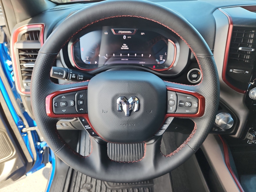 Bluetooth technology is built into the Ram 1500, keeping your hands on the steering wheel and your focus on the road. This vehicle is a certified CARFAX 1-owner. Protect this model from unwanted accidents with a cutting edge backup camera system. This vehicle offers Apple CarPlay for seamless connectivity. Keep your hands warm all winter with a heated steering wheel in the Ram 1500 . An off-road package is installed on it so you are ready for your four-wheeling best. This model's Lane Departure Warning helps keep you in your lane. This model has automated speed control that adjusts to maintain a safe following distance, enhancing highway driving convenience. The Ram 1500 has a clean CARFAX vehicle history report. You'll never again be lost in a crowded city or a country region with the navigation system on this Ram 1500. This 2025 Ram 1500 offers Automatic Climate Control for personalized comfort.