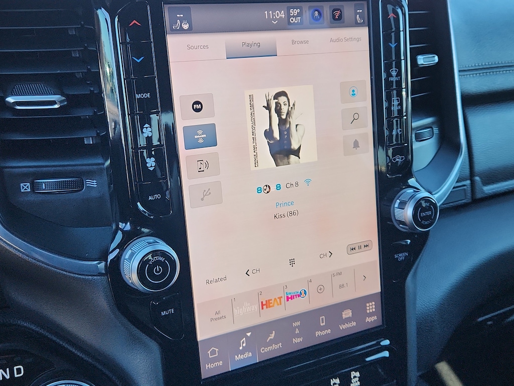 The state of the art park assist system will guide you easily into any spot. Bluetooth technology is built into the Ram 1500, keeping your hands on the steering wheel and your focus on the road. Never get into a cold vehicle again with the remote start feature on this 1/2 ton pickup. Protect this vehicle from unwanted accidents with a cutting edge backup camera system. Keep your hands warm all winter with a heated steering wheel in the vehicle . Apple CarPlay: Seamless smartphone integration for this vehicle - stay connected and entertained on the go! This vehicle offers Android Auto for seamless smartphone integration. Good News! This certified CARFAX 1-owner vehicle has only had one owner before you. You'll never again be lost in a crowded city or a country region with the navigation system on this Ram 1500. This 1/2 ton pickup has auto-adjust speed for safe following.